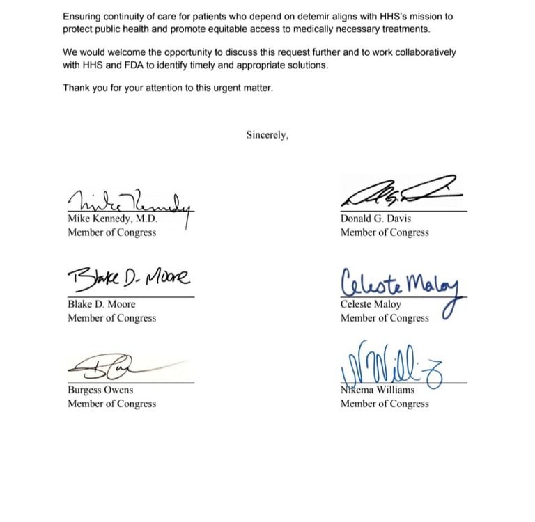 On January 20, 2026, Members of Congress sent a formal letter to the U.S. Department of Health and Human Services (HHS) and the U.S. Food and Drug Administration (FDA) calling attention to the urgent need to protect patient access to insulin detemir (Levemir).